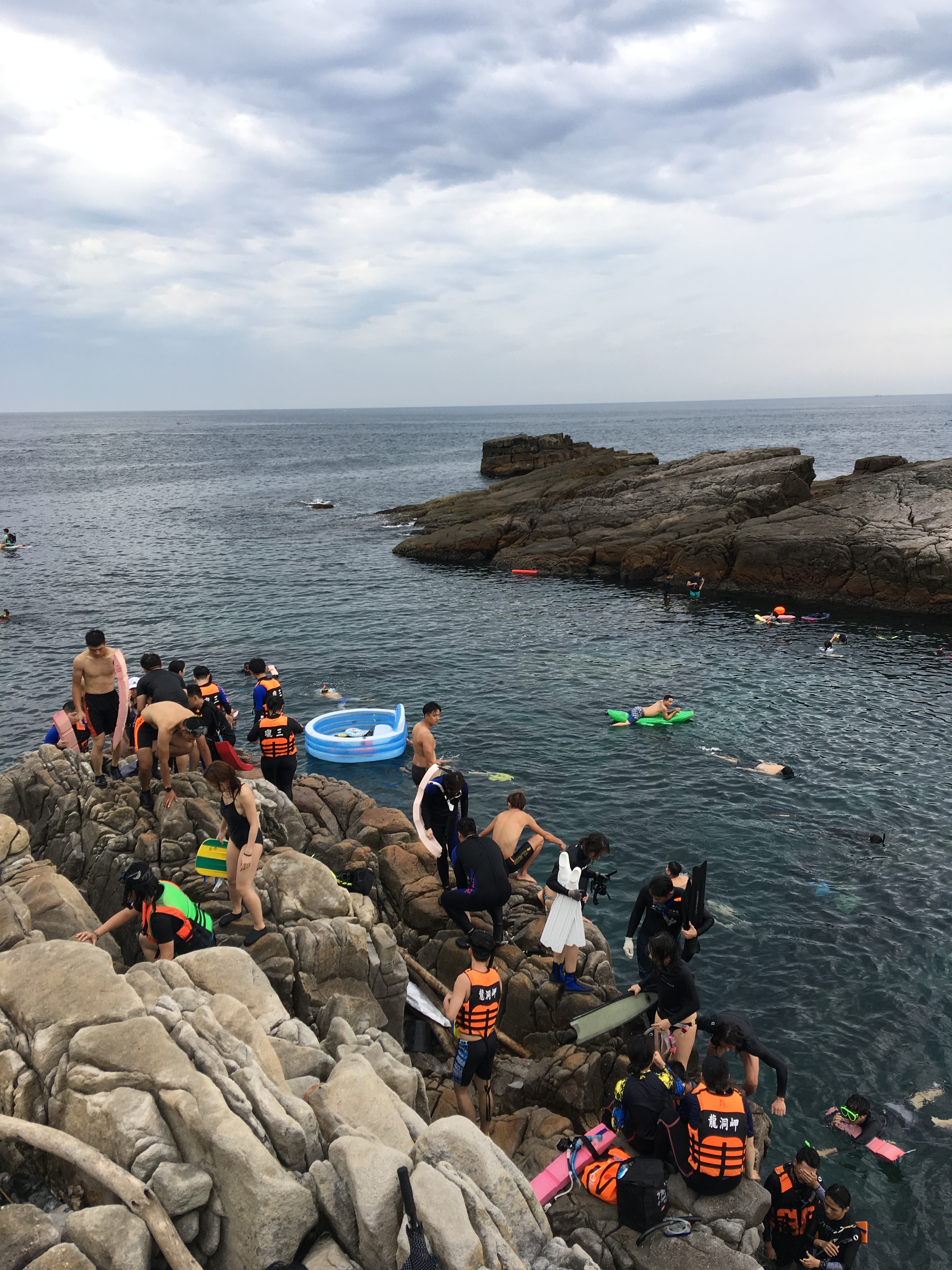 We reached Hemei Elementary school and where the road ends, is where the trail to the crags start. Many Taiwanese frequent this area as it is a popular diving location too, so you won’t miss it.