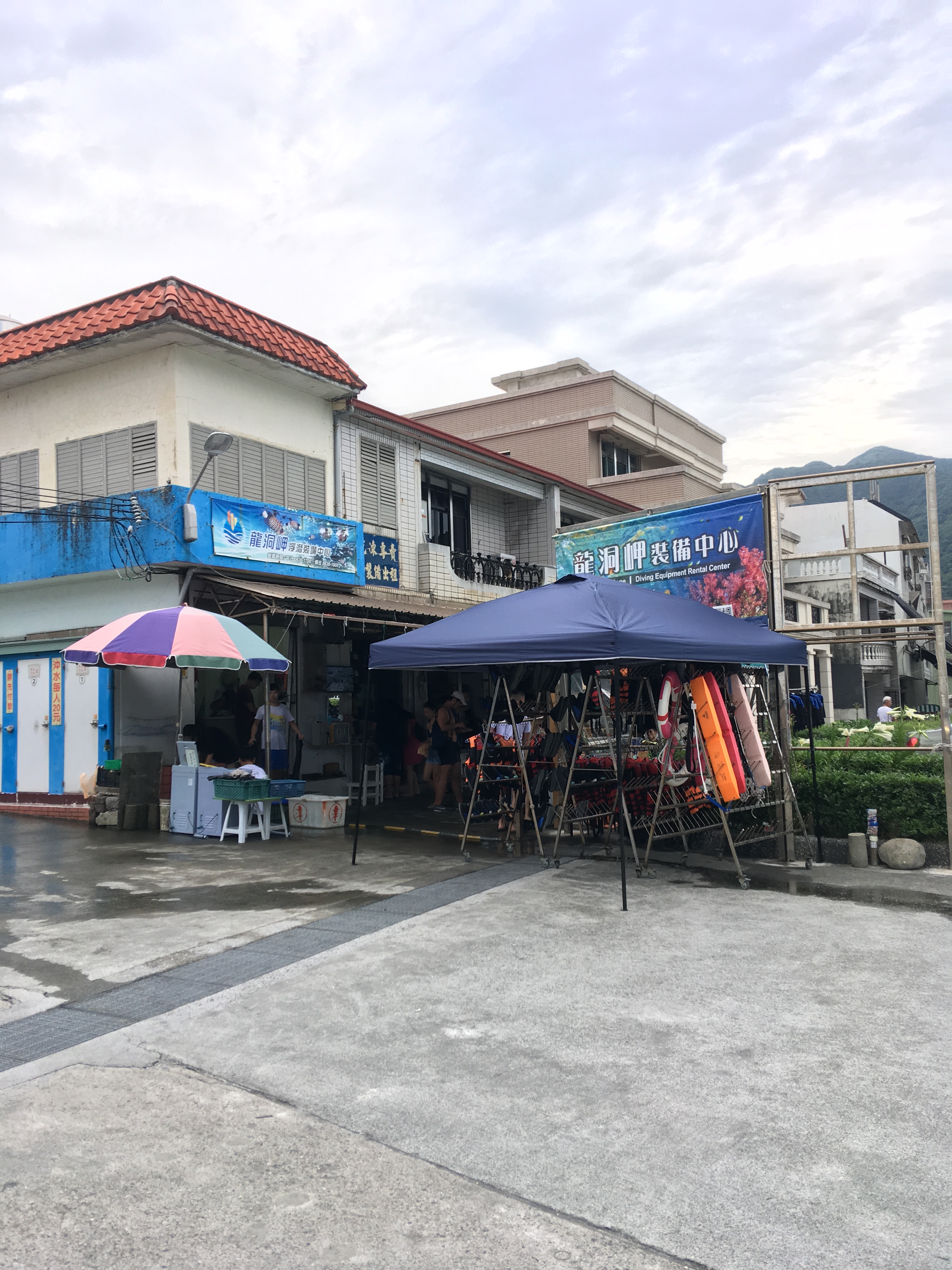 There are several eateries that cater to diving community. We found one near Bitou, that was recommended by The Bivy’s website, to have pretty good lu rou fan (more recommendations here). The closest 7/11 is there as well. The Crack House has 2 bicycles that we used to get to Bitou, about 2 km away from Hemei Elementary school.
