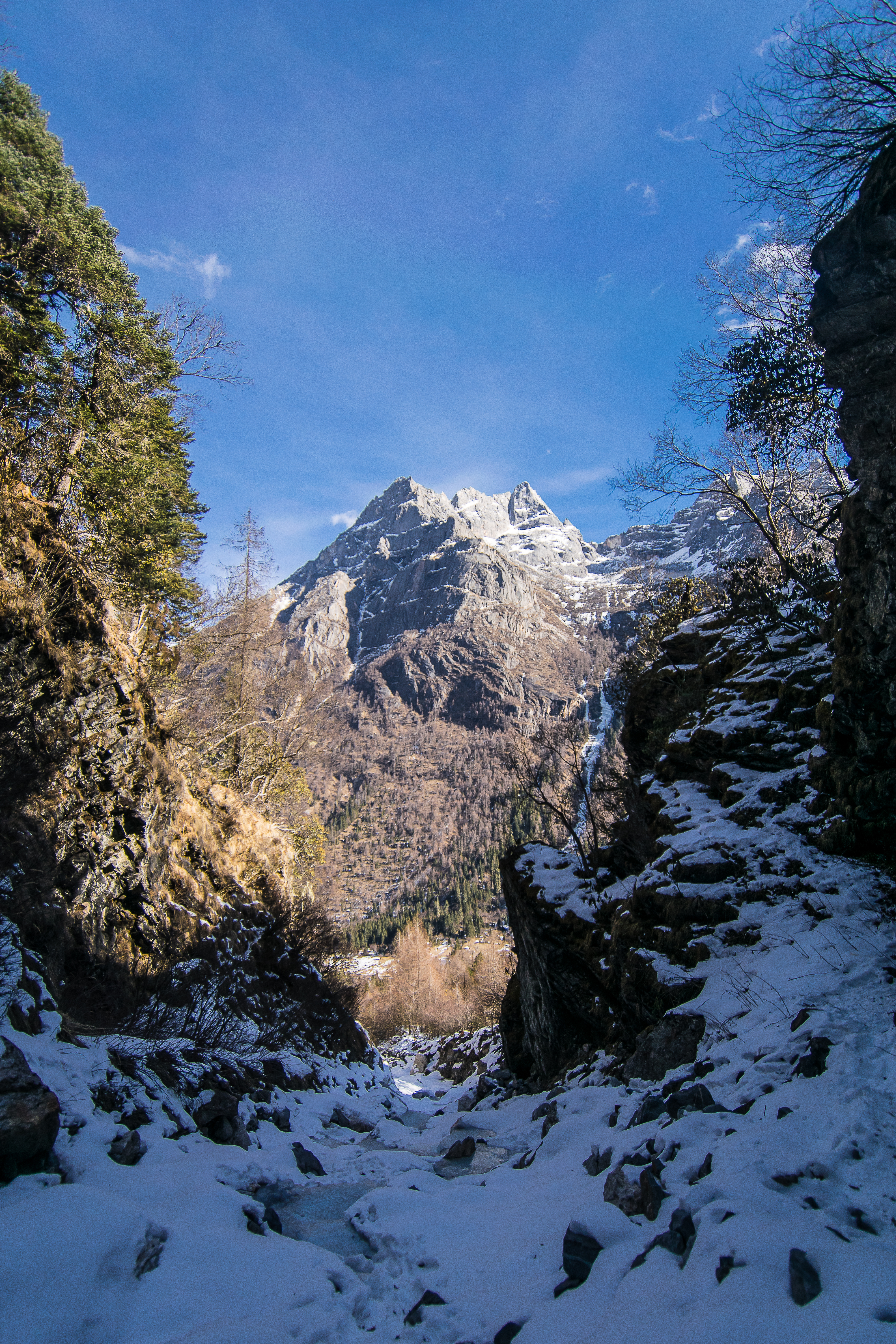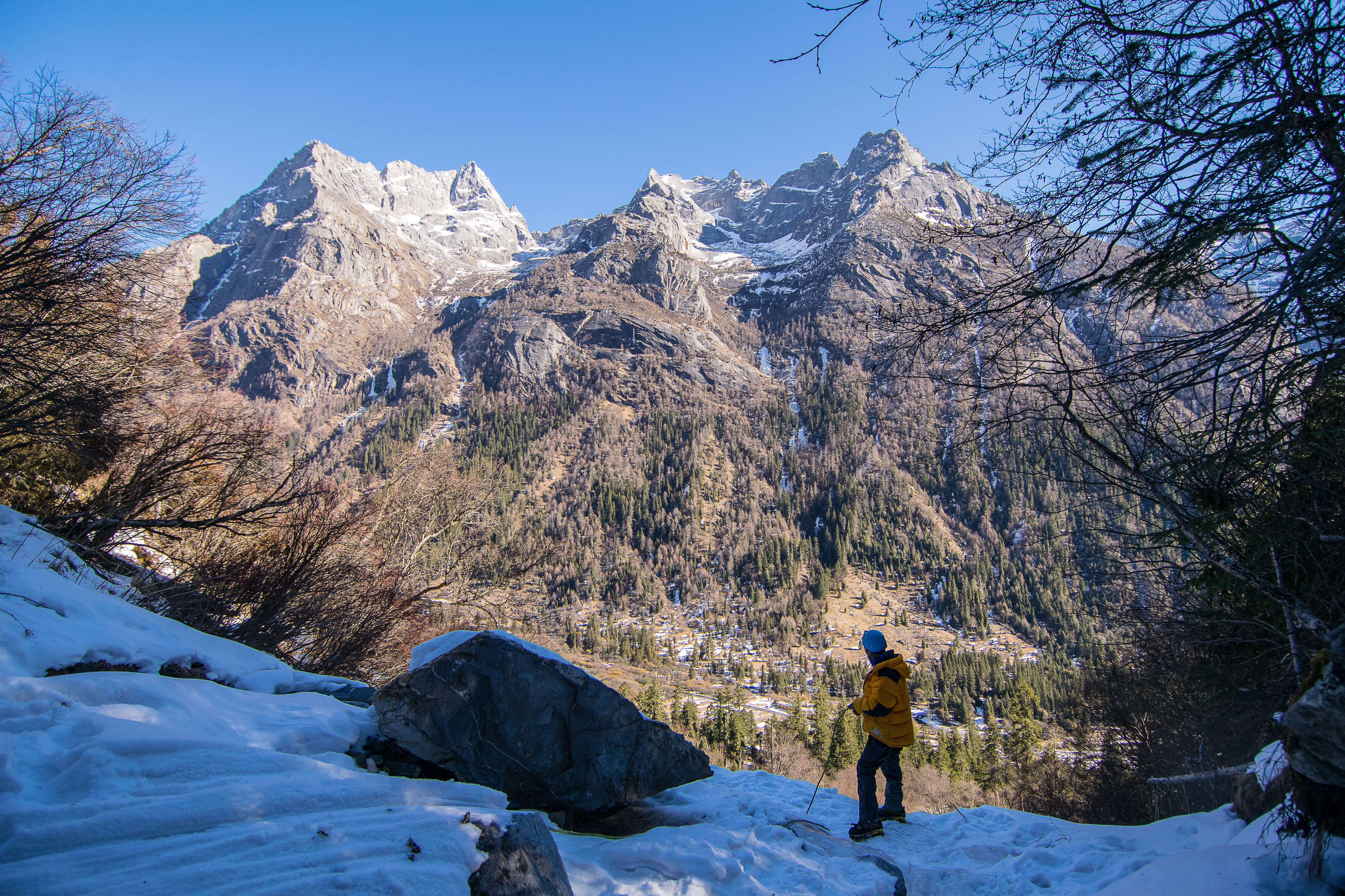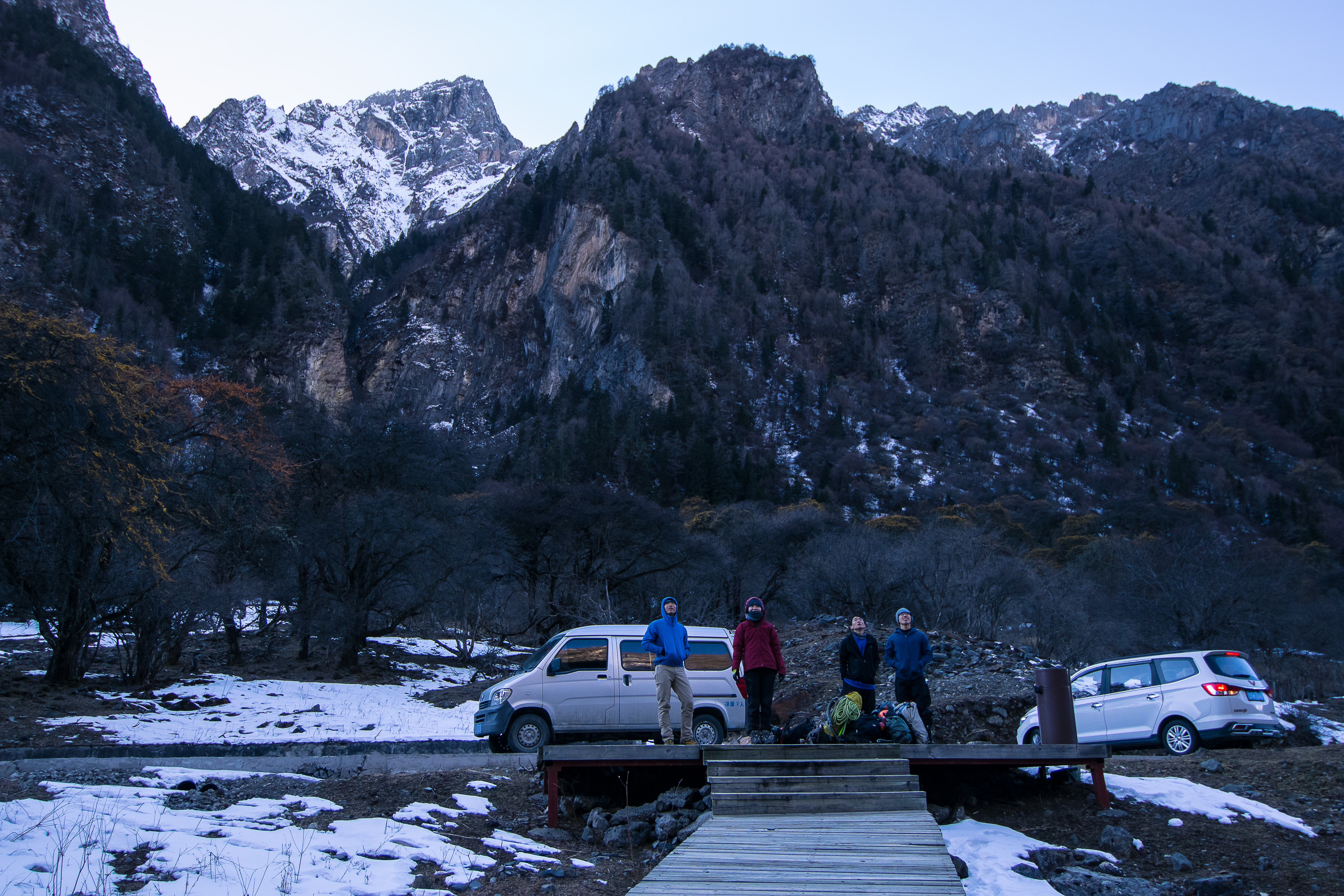We drove into the middle of the valley at 0800 hrs only for 邓老师 to realize he forgot his backpack of gear. We stood frozen in the -10 degrees cold alongside the road for what felt like eternity as we waited for him to go home to retrieve his pack. During that time we watched as 2/3 groups of other climbers alighted and went up the trail to climb in the same place as us. When he returned, we decided to head elsewhere, somewhere more peaceful.
