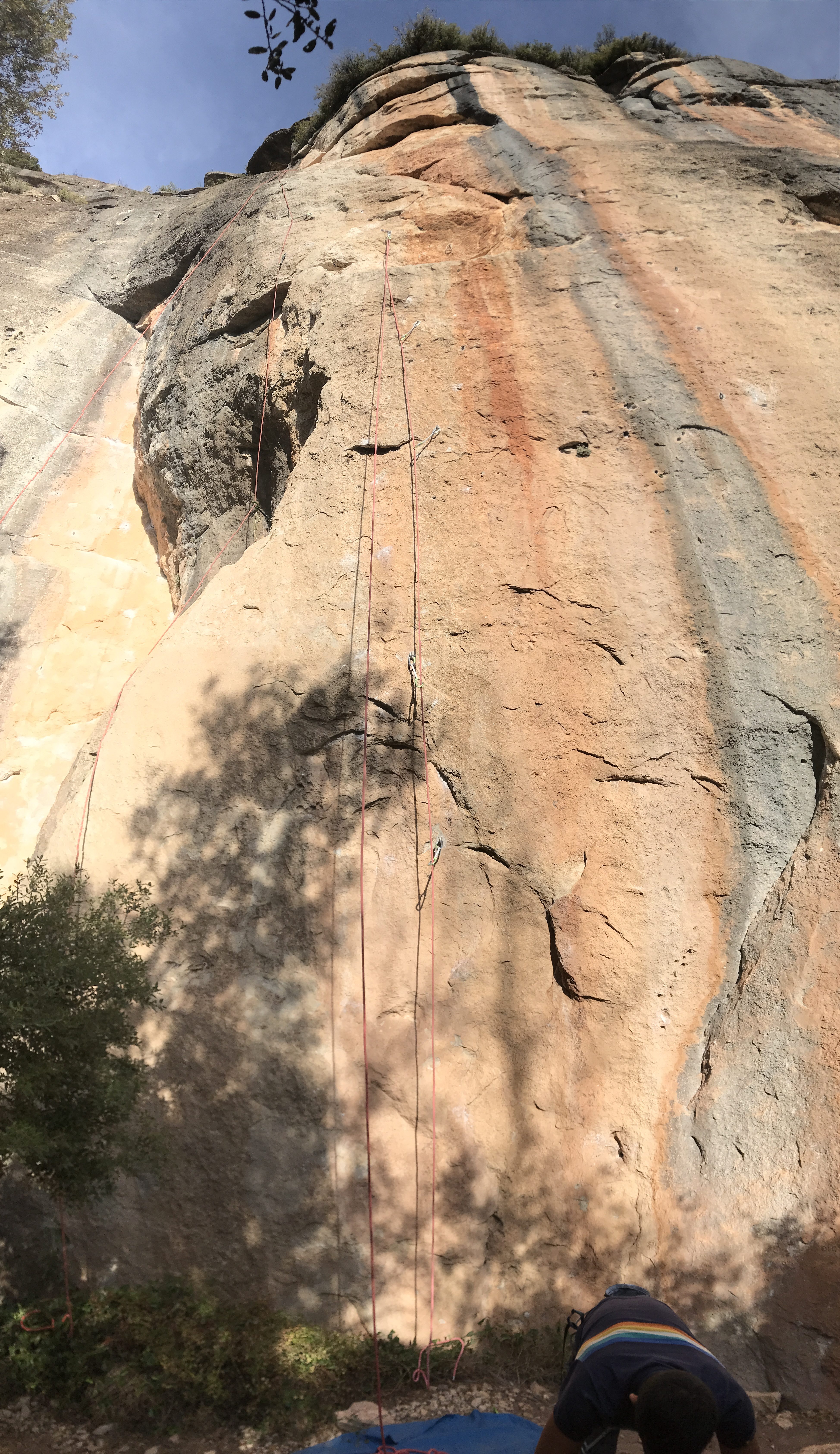 At some point, we found our way to El Pati. Again, not that we knew this then. We looked up and saw a fella jamming his way up this massive crack system. We don’t know how else to describe it but the wall was massive. And absolutely intimidating. His friend greeted us, and we watched him climb for a bit. “Incredible, probably nothing easier than a 7c?” was our first thought. We later learnt that he was on Estado Critico, a 9a, which also became popular as it saw the world’s first 9a onsight by Alex Megos. Clearly, we were foreigners, with tons to learn and see.