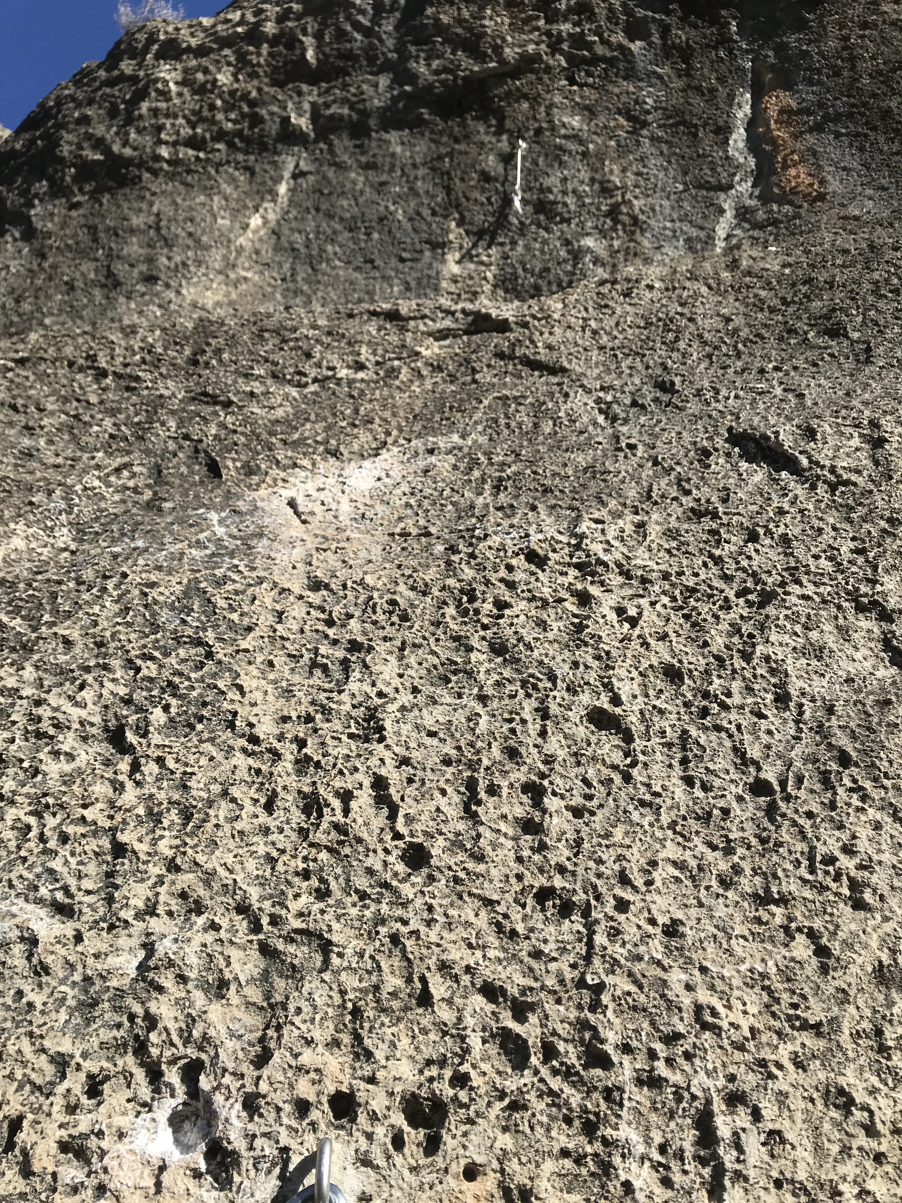 It took us an hour or so to find our way down to, at that point, somewhere. We took the sunlight flickering off bolts on the rock faces to mean that we were on the right track. The first crag we came to was Can A Prop, but not that we knew this then. Following the trail that stood at the foot of the wall, we snaked along. There were bolts everywhere. At this point, we were so hopelessly lost and confused that we had to ask for help. The climbers we met would prove to be extremely friendly, welcoming and most of all, helpful. They showed us their guidebooks, told us where we were and how to get around.