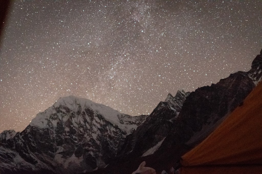 Singing army route march songs on the way up to Lower Base Camp was a spontaneous yet truly memorable decision made by a few of our army enthusiasts on our team. That sense of camaraderie – that togetherness as a team was perhaps something everyone longed for after being split up into different hiking groups. For the first time on the trip the team was united and hiked as one big group. The cheering, singing and casual jokes in between was just what we needed to overcome the tiredness and the altitude, and made looking at the ground while carrying our heavy backpacks just a little more bearable. Not long after we found ourselves at Lower Base Camp. Tents were erected, sleeping mats were unfolded, and hot water was poured as we huddled in for the night, embracing the unbearable negative ten degree nights. A few of us brave souls, despite the wind and cold, were determined to catch a glimpse of the night sky. With little to no light pollution, we stood in awe at the vastness and beauty of the milky way and the billions of stars that illuminated the night sky.